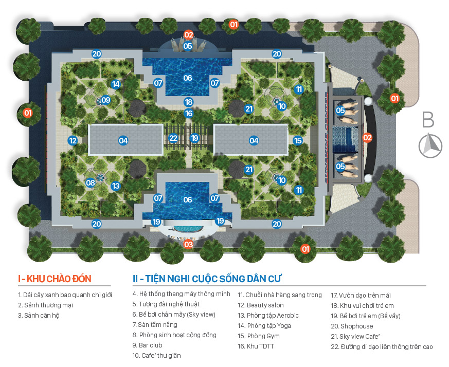 Tiện ích nội khu: Dự án Sunshine Center bao gồm 35 tầng được xây dựng trên diện tích đất 4.600m2 tại giao lộ giữa đường 16 với đường Phạm Hùng, Sunshine Center gồm có 4 tầng hầm cùng hơn 76.000m2 sàn tầng nổi, là một tổ hợp đa chức năng bao gồm khu thương mại – văn phòng (khối đế) và khu căn hộ (khối tháp).